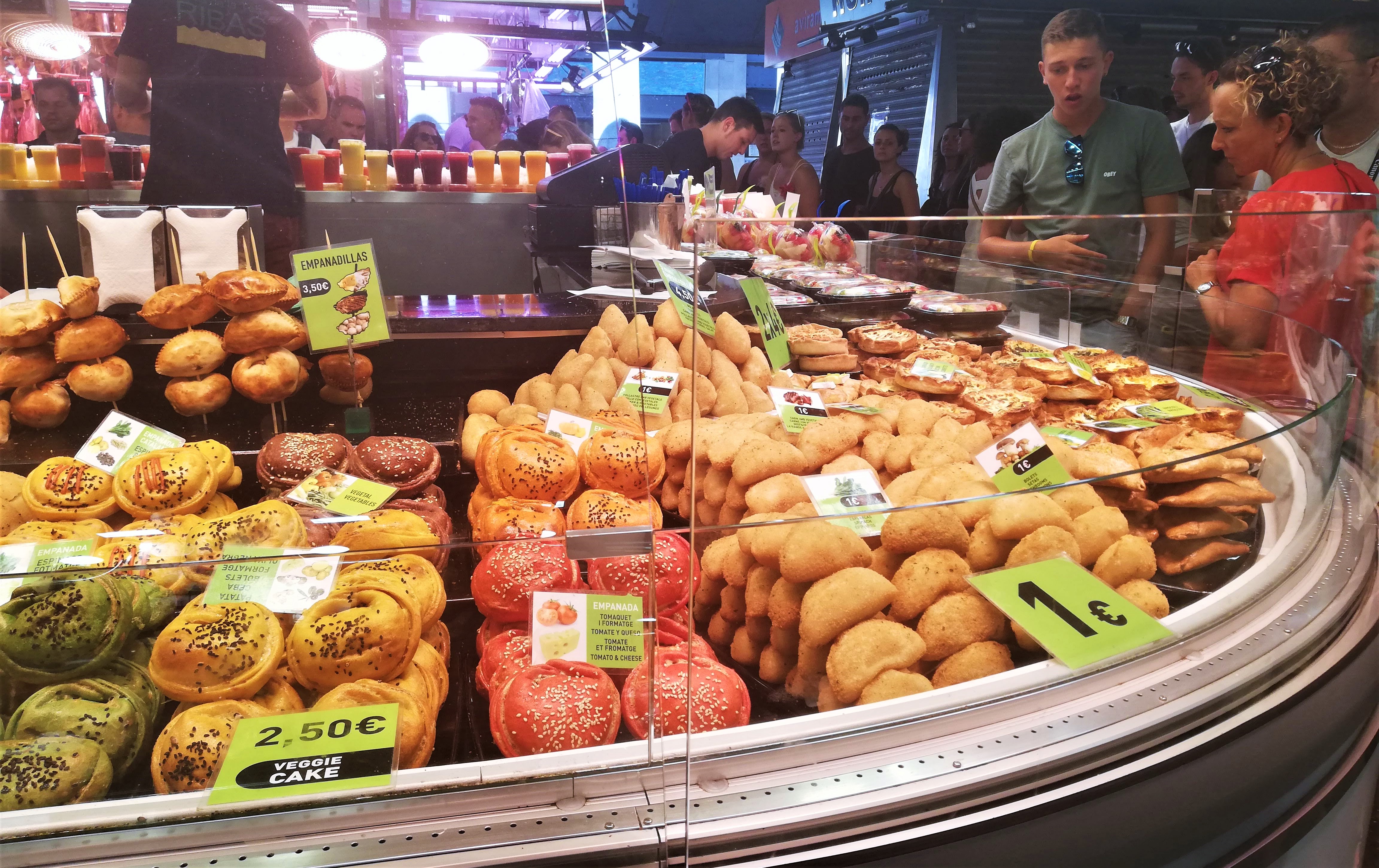 The map of the market on the main website can be a bit temperamental, but if you’re a herbivore hoping to avoid the meat/fish zones then do take a look before you navigate your way through. For vegans, there’s great falafel, burrito bowls and other good eating on offer, so don’t be put off by the typically Spanish meats and cheeses that crowd some entrances.