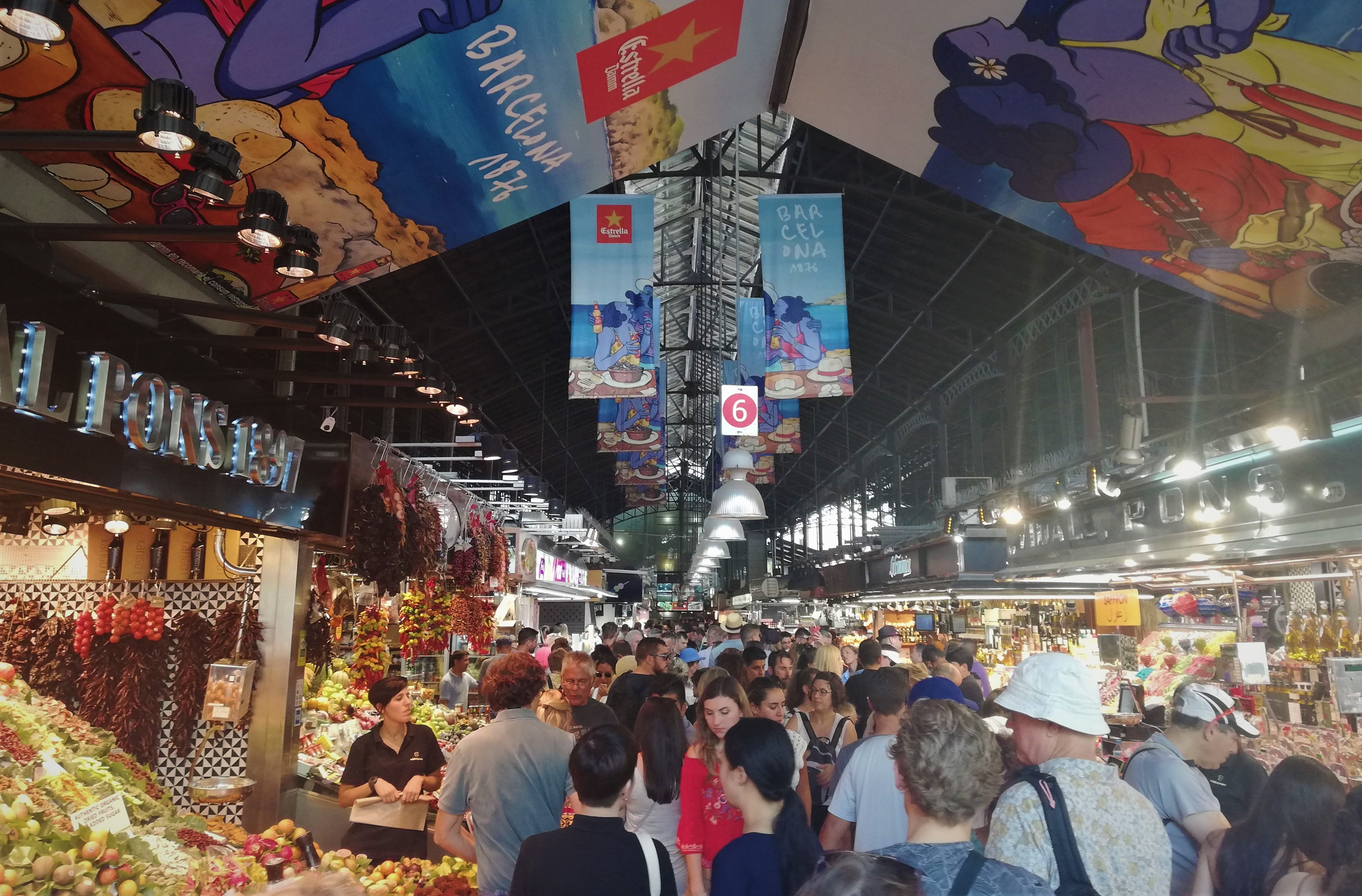 Do expect it to be busy throughout. The market entrance is only slightly set back from La Rambla, and the food quality is so much higher than that of the tourist traps on the street itself that it’s a prime spot for anyone looking for a bite to eat.